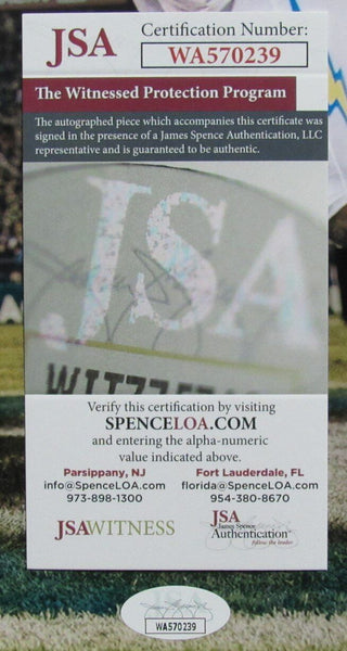 Jalen Hurts, of the Philadelphia Eagles, autographed and inscribed 16x20 photo. The inscription proudly declares "Fly Eagles Fly!" and comes with a JSA certification. This includes a tamper-proof holographic sticker and a certificate of authenticity for complete assurance of its legitimacy.