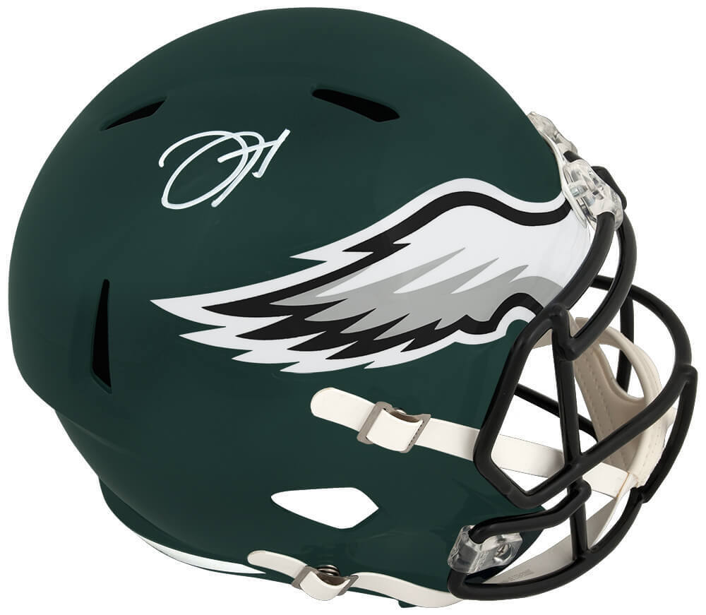 Jalen Hurts signed Philadelphia Eagles Riddell full size speed replica helmet. Item comes with a Beckett Authentication tamper evident numbered sticker and Certificate of Authenticity which can be verified online.