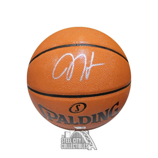 This James Harden autographed Spalding basketball is authenticated by Fanatics. Autograph is signed in silver ink.