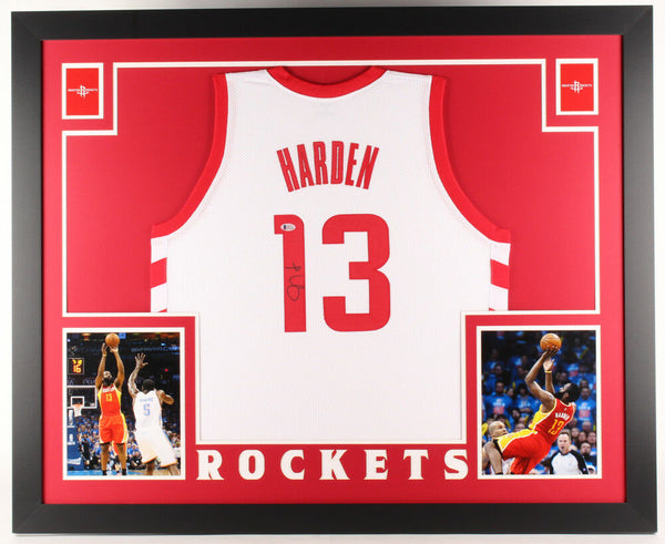 James Harden Signed Houston Rockets 35 x 43 Custom Framed Jersey (Beckett COA)