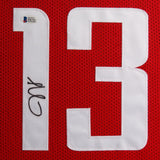 Custom framed display measures 35" x 43" in size. Features a jersey which has been hand-signed in black felt-tip pen by James Harden. The lot / autograph(s) includes an official Beckett Authentication Services serially numbered hologram and matching COA for authenticity purposes. The signing of this item was witnessed by Beckett.Authentication: Beckett COA