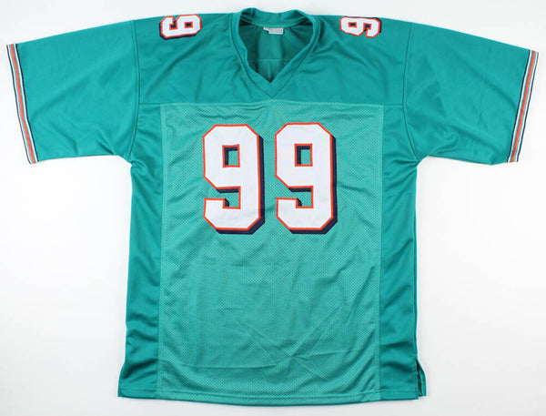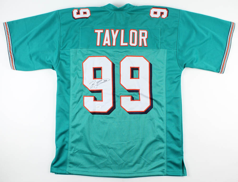 Custom on-field style jersey. Everything sewn on, size XL. Hand-signed in black paint pen by Jason Taylor. The autograph includes an official James Spence Authentication (JSA) hologram for authenticity purposes. The signing of this item was witnessed by JSA.Authentication: JSA Hologram