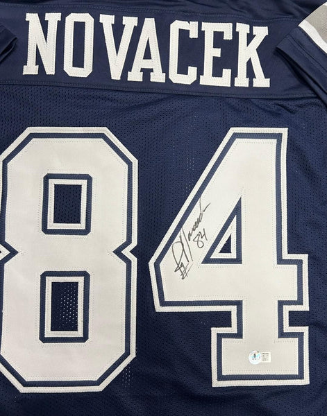 CUSTOM STITCHED JERSEY of Dallas Cowboys Super Bowl Champ JAY NOVACEK. This jersey is signed with Black Sharpie. This jersey is size XL has all letters and numbers sewn in. This item was signed at a public signing and would make a great addition to any Cowboys collection. This item is guaranteed to be 100% authentic and will include a COA from Beckett Authenticity with matching serial numbers.