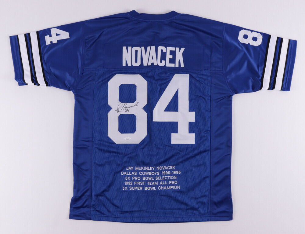 Jay Novacek Signed Dallas Cowboys Career Highlight Stat Jersey (JSA COA) T.E.