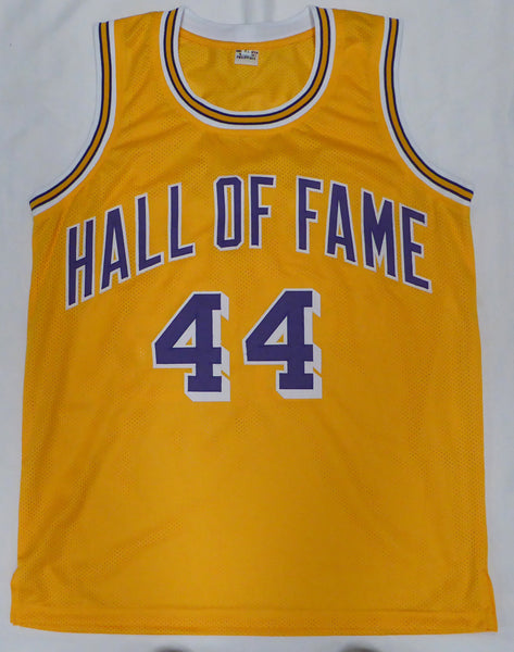 This is a Yellow Jersey that has been hand signed by Jerry West. This is a custom jersey with no name brand. The approximate size is XL. It has nice sewn in name and numbers. This item has been certified authentic by Beckett Authentication (BAS) and comes with their tamper-proof QR Code hologram.
