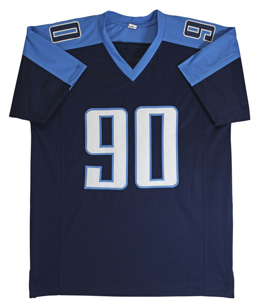 This Autographed Navy Blue Pro Style Jersey with the inscription of "The Freak" has been Personally Signed by Jevon Kearse of the Tennessee Titans. This item is 100% Authentic to include a Certificate of Authenticity (COA) / hologram by Beckett Authentication Services. This is a BAS Witnessed Protection Program item which means a Beckett Authentication Service representative was present when this item was being signed. This is a stock item. We conducted an autograph signing with Jevon Kearse and we have several of these available. The one you will receive will be of equal quality to the one pictured. This item can be verified through BAS Witnessed. This is a X-Large sized, non-branded, custom-stitched Jersey.