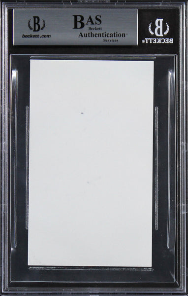 This Autographed 3x5 Index Card has been Personally Signed by Jim Calhoun of the University of Connecticut Huskies. This item is 100% Authentic, it comes slabbed and authenticated by Beckett Authentication Services. The authenticity can be verified on Beckett Authentication Services website.