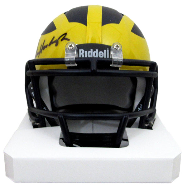 Jim Harbaugh Signed/Autographed Mini Football Helmet University Michigan Coach 2023 National Champions. This helmet is authenticated by Fanatics Authentic and includes their tamper-proof hologram sticker.