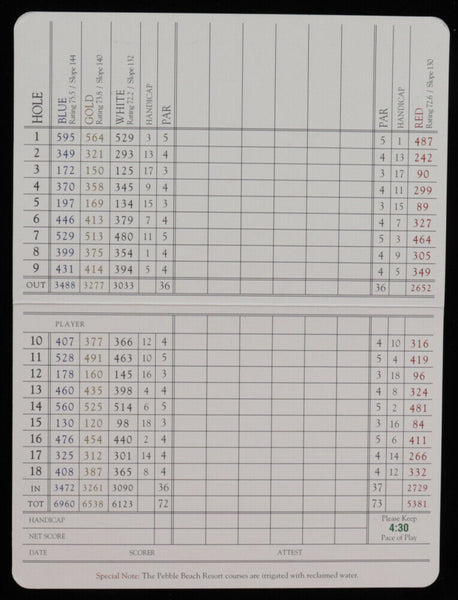 2017 Spyglass Hill Pebble Beach golf scorecard measures approximately 6" x 8" in size and has been hand-signed by Jim McMahon (Chicago Bears). Please note, scorecard shows some stains.The lot / autograph(s) includes an official James Spence Authentication (JSA) hologram and matching COA for authenticity purposes.Authentication: JSA COA