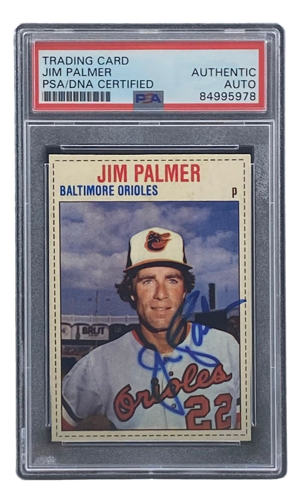 Featured is a Jim Palmer Baltimore Orioles signed 1979 Hostess #11 trading card. This card has been hand signed by Palmer and has been authenticated and encapsulated by PSA. This card would make a great addition to any sports memorabilia collection! SPECIFICATIONS Autographed By: Jim Palmer Team: Sport: Baseball Authentication: Professional Sports Authenticator (PSA)