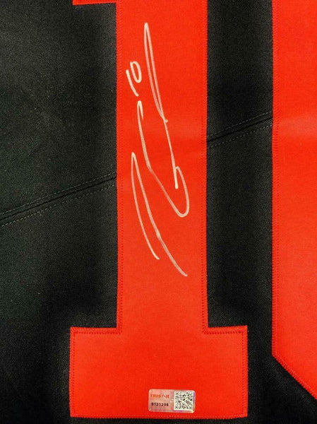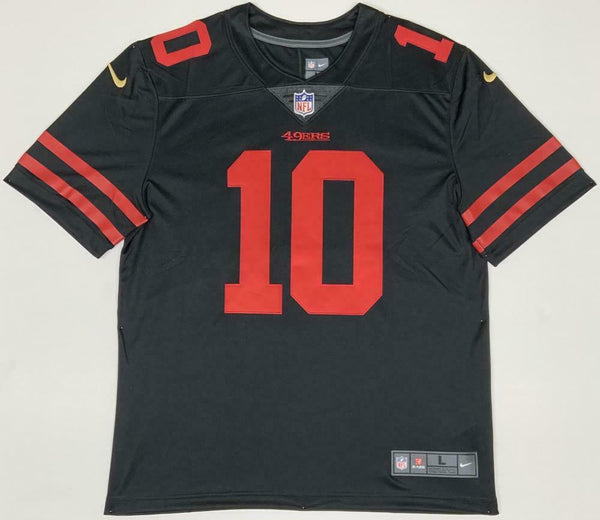 This Nike limited San Francisco 49ers black jersey has been hand signed by Jimmy Garoppolo. It is officially licensed by the National Football League and comes with an individually numbered, tamper evident hologram from TriStar Authenticated. To ensure authenticity, the hologram can be reviewed online. This process helps to ensure that the product purchased is authentic and eliminates any possibility of duplication or fraud.These are in stock and ready to ship.This piece comes complete with the serial numbered hologram from TriStar Authenticated. MONEY BACK GUARANTEE! If for any reason you are not completely satisfied with the quality or authenticity of your purchase, we will gladly give you a full refund or exchange, whichever you prefer up to 30 days after purchase. Please feel free to e-mail us with any questions. Thank you. Authenticator Pre-Certified Authenticator: TriStar Authenticated History of item: Jimmy Garoppolo has signed this item in the presence of a representative from TriStar Authenticated. Describe how you came to possess this item: Super Sports Center is a fully authorized dealer for Upper Deck Authenticated as well as Mounted Memories and Steiner Sports. Other information about you and / or the item: Super Sports Center strives to deliver the most authentic in sports memorabilia from trusted companies like Mounted Memories, Steiner Sports and Upper Deck Authenticated. If it exists, we can find it for you!