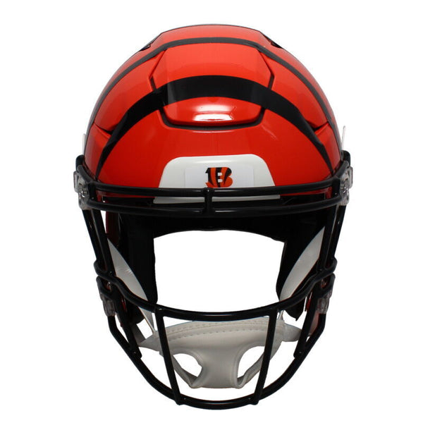 This Cincinnati Bengals authentic speed flex helmet has been personally hand-signed by Joe Burrow with the inscription "2020 #1 PICK" & "Who Dey." It is officially licensed by the National Football League and comes with an individually numbered, tamper-evident hologram from Fanatics Authentic. To ensure authenticity, the hologram can be reviewed online. This process helps to ensure that the product purchased is authentic and eliminates any possibility of duplication or fraud.This helmet is limited to just 50 and you are bidding on a random number from the edition.