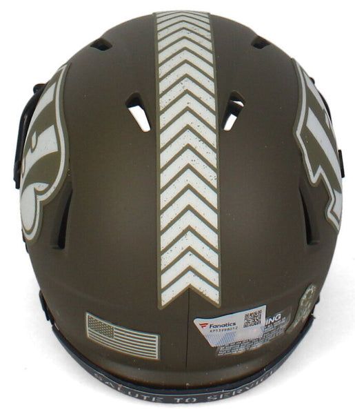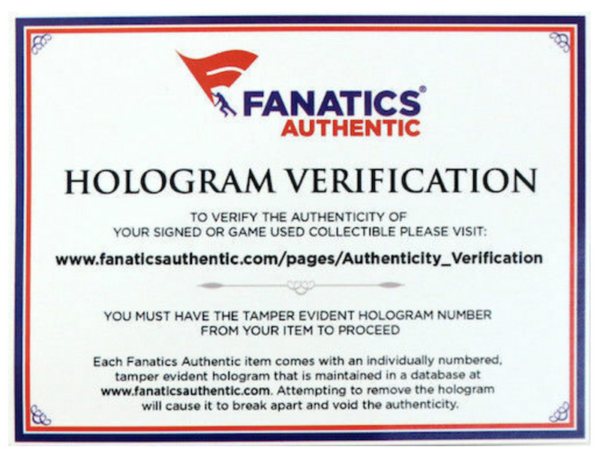 This mini speed Salute To Service helmet has been personally hand-signed by Joe Burrow. It is officially licensed by the National Football League and comes with an individually numbered, tamper-evident hologram from Fanatics Authentic. To ensure authenticity, the hologram can be reviewed online. This process helps to ensure that the product purchased is authentic and eliminates any possibility of duplication or fraud.