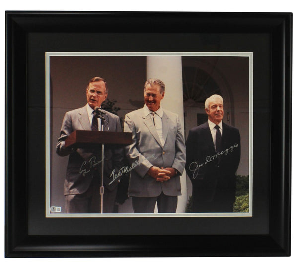 George Bush, Ted Williams, Joe DiMaggio Signed Framed 16x20 At White House Photo