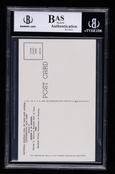 Hall of Fame Plaque postcard has been hand-signed by Joe Dimaggio (D. 1999, New York Yankees, HOF).The item / autograph(s) has been authenticated and encapsulated by Beckett (BGS) for authenticity purposes.Authentication: BGS Encapsulated