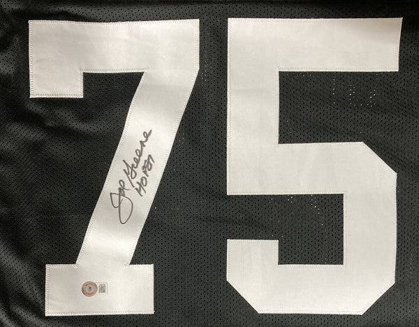 Featured is a Joe Greene signed custom football jersey, inscribed "HOF 87". This jersey was hand signed by Greene and comes with the Beckett hologram and certificate of authenticity. This jersey features professionally sewn letters and numbers and is size XL. This jersey has no team tags or emblems and is intended as a sports collectible. This jersey would make a great addition to any sports memorabilia collection! SPECIFICATIONS Autographed By: Joe Greene Team: Pittsburgh Steelers Sport: Football Authentication: Beckett Grading Services