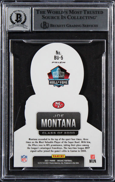 49ers Joe Montana Signed 2021 Panini Mosaic Busted #5 Card Auto 10! BAS Slabbed
