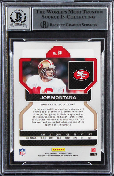 49ers Joe Montana Signed 2021 Panini Prizm #60 Card Auto 10! BAS Slabbed