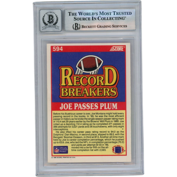 The number in the listing title is just an inventory sku for our records and is not the authentication number. This is a stock photo, unless otherwise noted. This is a San Francisco 49ers 1990 Score #594 Slabbed Trading Card that was personally autographed by Joe Montana. Includes a certificate of authenticity from Beckett Authentication Services (BAS) and Denver Autographs.FREE SHIPPING within the USA on orders over $10!