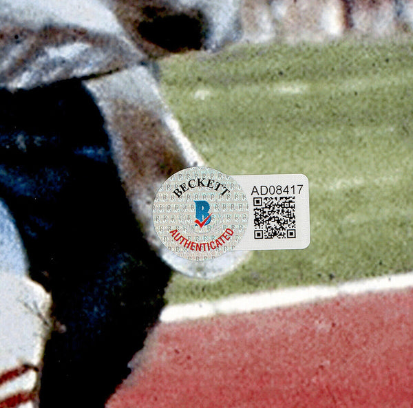 This is a 16x20 Photo that has been hand signed by Joe Montana & Dwight Clark. This item was inscribed "The Catch 1.10.82", "1981 NFC Championship Game Candlestick Park", "Red Left Slot Sprint Option", "49ers 28 Dallas 27", and the 'Sprint Right Option Play' was also inscribed with a sketch of the play. This item has been certified authentic by Beckett Authentication (BAS) and comes with their tamper-proof QR Code sticker that can be verified on beckett-authentication.com.