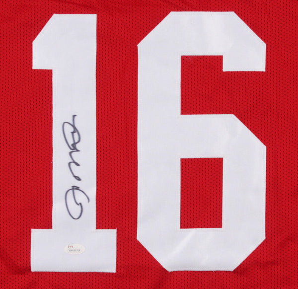 Custom on-field style jersey. Everything is sewn on, size XL. Hand-signed in black felt-tip pen by Joe Montana (HOF). Montana's career highlights have been custom stitched onto the back of the jersey below the reverse numbers. The lot / autograph(s) includes an official James Spence Authentication (JSA) hologram and matching COA for authenticity purposes. The signing of this item was witnessed by JSA.Authentication: JSA COA Check out all the items in our Friendly Confines Collectibles store, Thanks for looking.