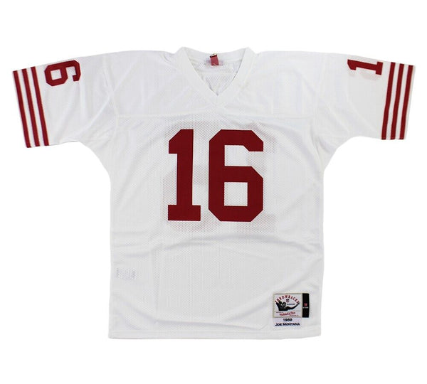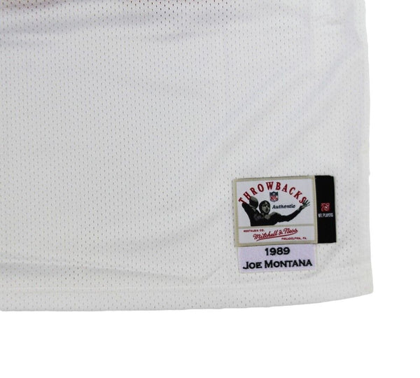 A San Francisco 49ers Mitchell & Ness White Authentic NFL Jersey hand signed by Joe Montana. The item and signature are in excellent condition. Joe is a former quarterback who played 16 seasons in the NFL, 14 seasons with the San Francisco 49ers. He also played for Kansas City. After winning a national championship at Notre Dame, Montana started his career in 1979 with the 49ers. AUTHENTICATION: The item is accompanied by a Fanatics Authentic Serial Numbered and Databased Hologram