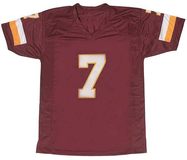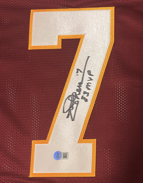 This custom maroon jersey has been personally hand-signed by Joe Theismann, Quarterback for the Washington Redskins. It comes with an individually numbered, tamper-evident hologram from Beckett Authentic. To ensure authenticity, the hologram can be reviewed online. This process helps to ensure that the product purchased is authentic and eliminates any possibility of duplication or fraud.