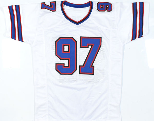 THIS IS NOT AN NFL JERSEY. THIS HAS NO TAGS, NO LOGOS, NO EMBLEMS. This is a hand autograph of Joey Bosa of the Buffalo Bills on a Custom Made (non-name brand) Authentic Style Jersey with stitched letters and numbers. This item has a Beckett Witnessed Authentication, which comes with a Beckett numbered hologram and a QR Code for verification. You can view this item on the Beckett Authentication website. It was signed either at a public autograph appearance or a private signing. This is a stock photo of the item. Although you may not receive this exact item, the item you receive is virtually identical and brand new in great shape. Jersey size is XL. THIS IS NOT AN NFL JERSEY. THIS HAS NO TAGS, NO LOGOS, NO EMBLEMS. This is a hand autograph of Joey Bosa of the Buffalo Bills on a Custom Made (non-name brand) Authentic Style Jersey with stitched letters and numbers. This item has a Beckett Witnessed Authentication, which comes with a Beckett numbered hologram and a QR Code for verification. You can view this item on the Beckett Authentication website. It was signed either at a public autograph appearance or a private signing. This is a stock photo of the item. Although you may not receive this exact item, the item you receive is virtually identical and brand new in great shape. Jersey size is XL.