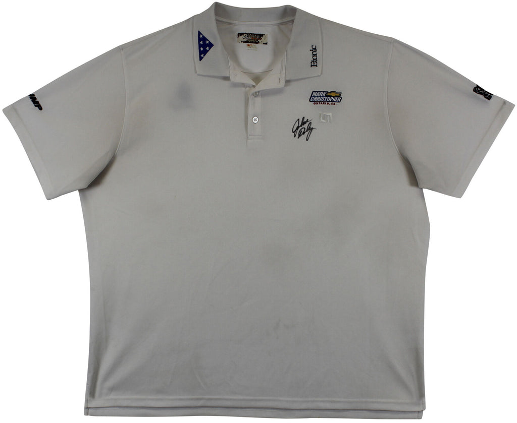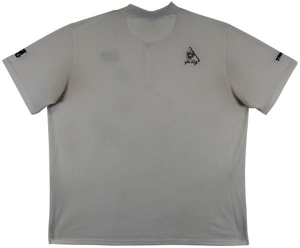 This Autographed Match Worn White Folds Of Honor Etonic Mark Christopher Chevy Loudmouth Polo Shirt has been Personally Signed by John Daly. This item is 100% Authentic to include a hologram by Beckett Authentication Services. This item will come with an affixed Beckett Authentication Services (BAS) authentication sticker, which includes a scannable QR code to verify authenticity. Please note that Beckett no longer provides serial-numbered COA cards, and the attached BAS sticker will serve as the complete authentication for this item. The authenticity can be verified on Beckett Authentication Services website. This is a XXX-Large sized Shirt. This match worn Loudmouth Polo shirt has been worn by John Daly, and comes with a letter of Authenticity from John Daly certifiying this is match worn & provenance of the item coming from his personal collection.