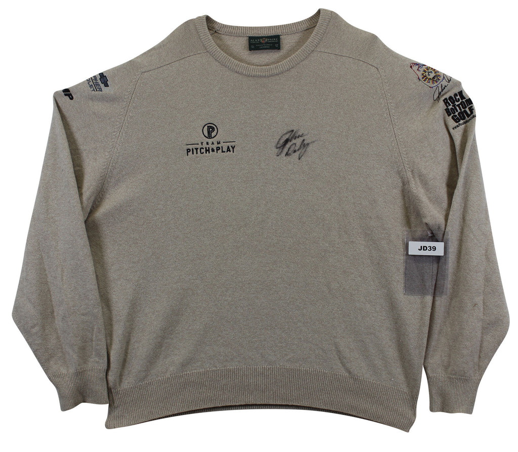 This Autographed Match Worn Black Team Pitch & Play Mark Christopher Chevy Rock Bottom Golf Trump Alan Paine Cashmere Sweater has been Personally Signed by John Daly. This item is 100% Authentic to include a hologram by Beckett Authentication Services. This item will come with an affixed Beckett Authentication Services (BAS) authentication sticker, which includes a scannable QR code to verify authenticity. Please note that Beckett no longer provides serial-numbered COA cards, and the attached BAS sticker will serve as the complete authentication for this item. The authenticity can be verified on Beckett Authentication Services website. This match worn Alan Paine cashmere sweater has been worn by John Daly, and comes with a letter of Authenticity from John Daly certifying this is match worn & provenance of the item coming from his personal collection.
