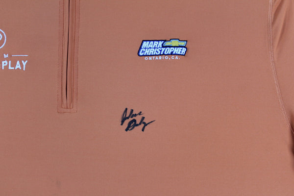 This Autographed Match Worn Orange Team Pitch & Play Mark Christopher Chevy Folds of Honor Quarter Zip Shirt has been Personally Signed by John Daly. This item is 100% Authentic to include a hologram by Beckett Authentication Services. This item will come with an affixed Beckett Authentication Services (BAS) authentication sticker, which includes a scannable QR code to verify authenticity. Please note that Beckett no longer provides serial-numbered COA cards, and the attached BAS sticker will serve as the complete authentication for this item. The authenticity can be verified on Beckett Authentication Services website. This is a XXX-Large sized Shirt. This match worn Folds of Honor quarter zip shirt has been worn by John Daly, and comes with a letter of Authenticity from John Daly certifying this is match worn & provenance of the item coming from his personal collection.
