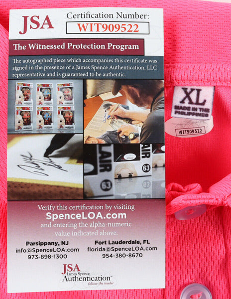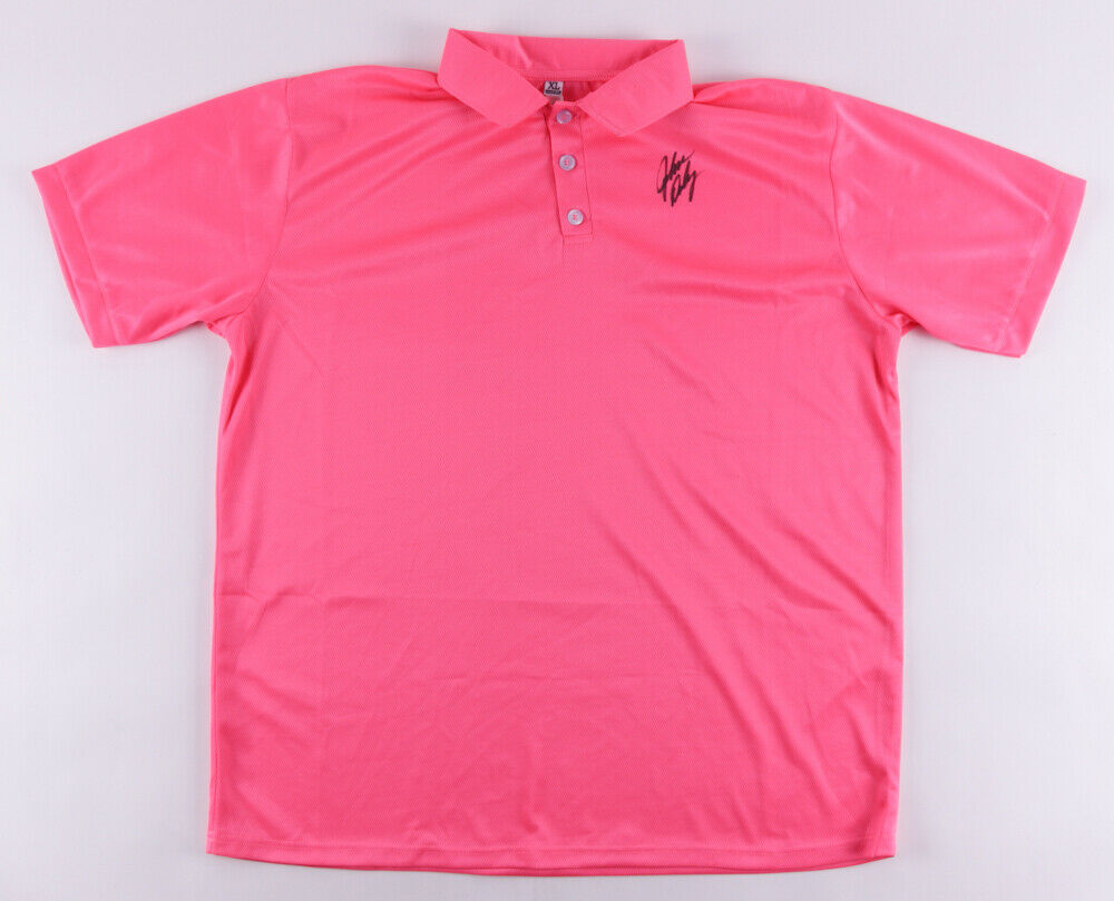 This autographed golf polo has been personally hand-signed by golfer, John Daly. This autograph is certified by James Spence Authentication's (JSA) Witnessed Protection Program. That means that a JSA representative was present when this item was signed. It comes with the numbered hologram and matching Certificate of Authenticity.