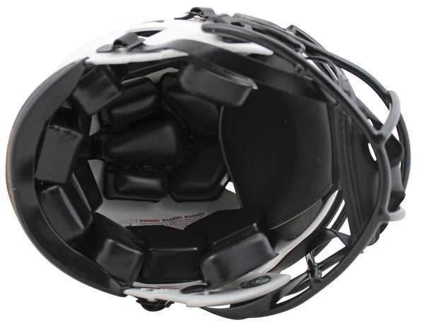 This Autographed Alternate Lunar Riddell Authentic Full Size Speed Proline Helmet has been Personally Signed by John Elway of the Denver Broncos. This item is 100% Authentic to include a hologram by Beckett Authentication Services. This item will come with the new Beckett Authentication hologram that has a scannable QR code rather than the traditional COA. If you would like to have a COA, you are welcome to reach out to Beckett for a printed certification once you receive your item. This is a BAS Witnessed Protection Program item which means a Beckett Authentication Service representative was present when this item was being signed. This is a stock item. We conducted an autograph signing with John Elway and we have several of these available. The one you will receive will be of equal quality to the one pictured. This item can be verified through BAS Witnessed.