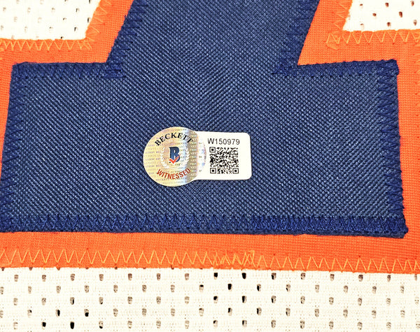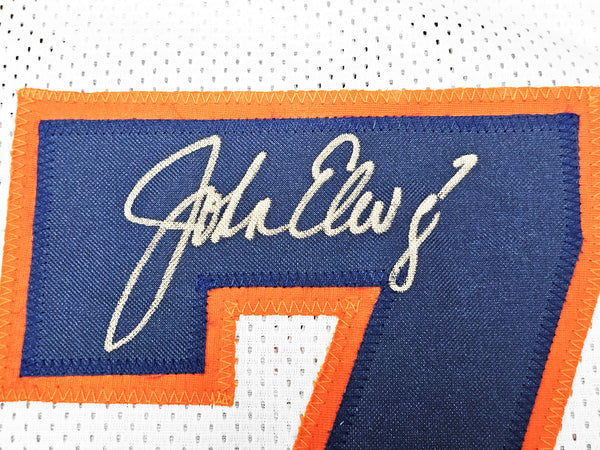 DENVER BRONCOS JOHN ELWAY AUTOGRAPHED WHITE JERSEY BECKETT BAS WITNESS 220369