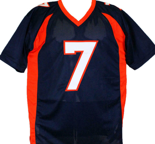 John Elway Autographed Blue Pro Style Jersey-Beckett W Hologram *Black THIS IS NOT AN NFL JERSEY. THIS HAS NO TAGS, NO LOGOS, NO EMBLEMS. This is a hand autograph of John Elway on a Custom Made (non name brand) Authentic Style Jersey with stitched letters and numbers. This item has a Beckett Witnessed Authentication, which comes with a numbered hologram and a generic Beckett Certificate of Authenticity. You can view this item on the Beckett Authentication website and it shows when and where the item was signed. It was signed either at a public autograph appearance or a private signing. This is a stock photo of the item. Although you may not receive this exact item, the item you receive is virtually identical and brand new in great shape. Jersey size is XL.
