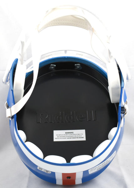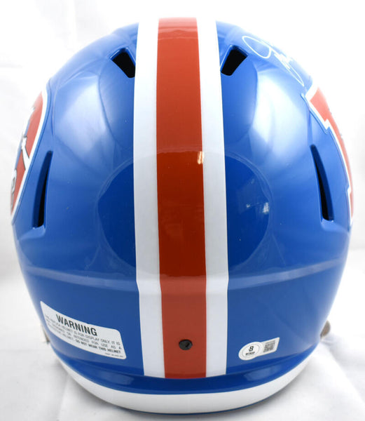 John Elway Autographed Denver Broncos F/S 75-96 Speed Helmet-Beckett W Hologram *White This is a John Elway of the Denver Broncos hand autographed Riddell Full Size 75-96 Throwback Speed Replica Helmet. This item has a Beckett Witnessed Authentication, which comes with a numbered sticker hologram and a QR code for verification. You can view this item on the Beckett website, it shows when and where the item was signed. It was signed either at a public autograph appearance or a private signing. This is a stock photo of the item. Although you may not receive this exact item, the item you receive is virtually identical, brand new, and in great shape.