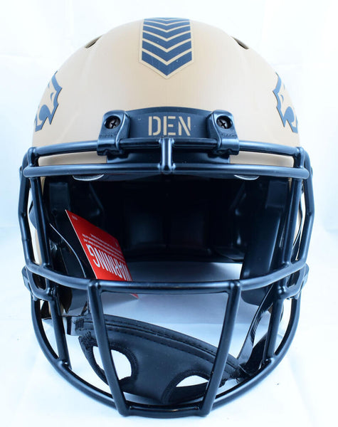 John Elway Autographed Denver Broncos F/S Salute to Service 2023 Speed Authentic Helmet-Beckett W Hologram *White This is a John Elway of the Denver Broncos hand autographed Riddell Full Size Salute to Service 2023 Speed Authentic Helmet. This item has a Beckett Witnessed Authentication, which comes with a numbered hologram and a QR code for verification. You can view this item on the Beckett website, it shows when and where the item was signed. It was signed either at a public autograph appearance or a private signing. This is a stock photo of the item. Although you may not receive this exact item, the item you receive is virtually identical, brand new, and in great shape. We appreciate your interest in our items and strive to make all transactions satisfying and professional.