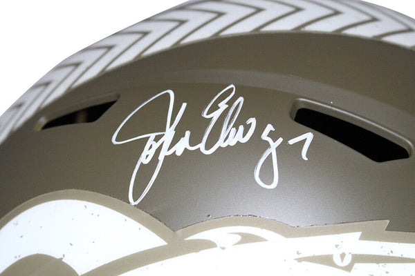 John Elway Signed Denver Broncos F/S Salute Helmet Beckett 40856 The number in the listing title is just an inventory sku for our records and is not the authentication number. The item pictured is a stock photo unless otherwise noted. This is a Denver Broncos Replica Salute to Service Full Size Helmet that was personally autographed by John Elway. Includes a certificate of authenticity from Beckett Authentication Services (BAS) and Denver Autographs.