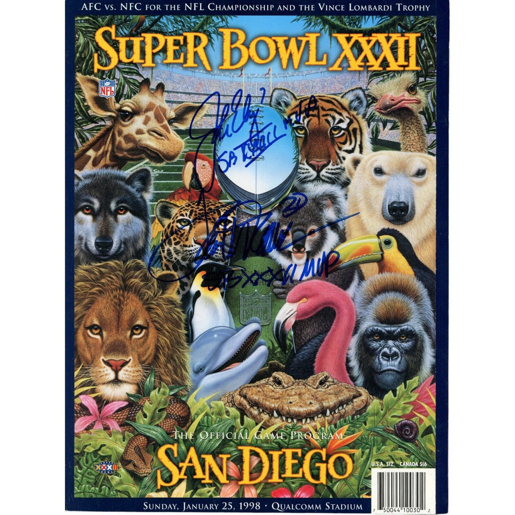 The number in the listing title is just an inventory sku for our records and is not the authentication number. The item pictured is a stock photo unless otherwise noted. This is a Denver Broncos Super Bowl XXXII Magazine that was personally autographed by John Elway and Terrell Davis. Includes a certificate of authenticity from Beckett Authentication Services (BAS) and Denver Autographs.FREE SHIPPING within the USA on orders over $10!
