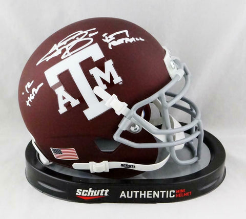 Johnny Manziel Signed A&M Maroon Schutt Mini Helmet w/ 2 Insc- JSA W Auth *Right