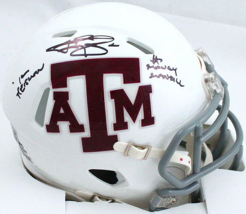 Johnny Manziel Autographed TX A&M White Speed Mini Helmet w/2Insc.-BeckettW Holo