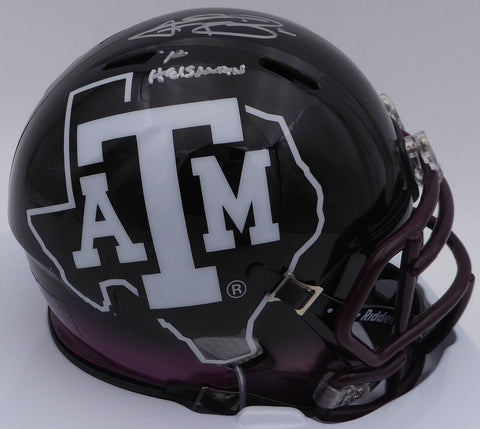 Johnny Manziel Heisman Signed A&M Aggies BlK Schutt Mini Helmet- JSA W Auth *W