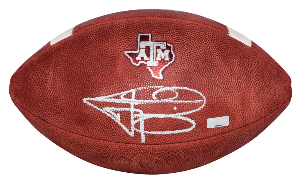 Johnny Manziel, former Heisman Trophy winning quarterback for the Aggies, has hand signed this Texas A&M Wilson NCAA football like the ones used in games. This item comes with a certificate of authenticity (COA) from Panini Authentic, one of the leaders in the industry. You will receive a COA along with a matching serial-numbered holograms.Item pictured may not be the exact item you will receive. It will be similar quality, and we guarantee your satisfaction.