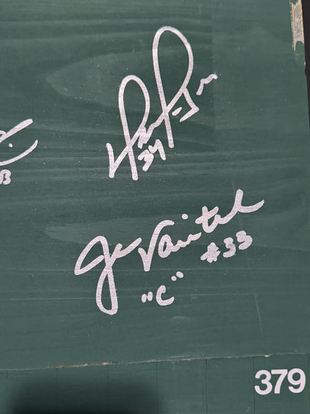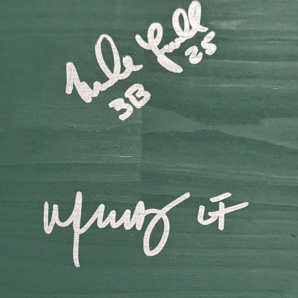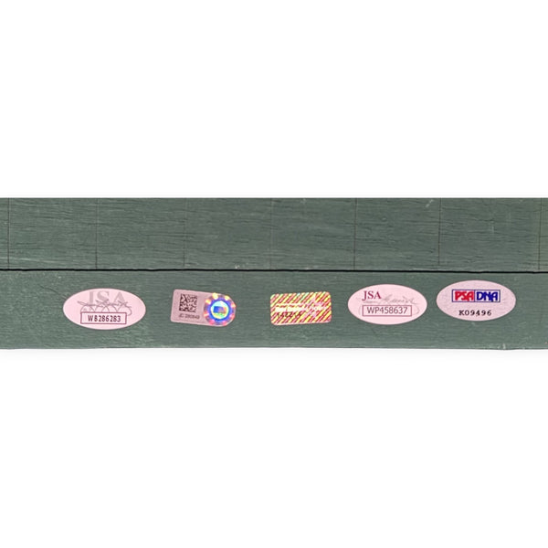 This replica Boston Red Sox Green Monster art of Jon Lesters 5/19/08 No Hitter is sized to 12x36. This has been personally hand signed by Jon Lester, David Ortiz, Manny Ramirez, Jason Varitek, Dustin Pedroia, Mike Lowell & Kevin Youkilis No Hitter 5/19/08 Inscription by Jon Lester Each player inscribed which position they were playing during the no hitter Limited Edition Numbered #2/31 for just the art and the Jon Lester autograph. All other players were added later on so this is a one of one piece. Certificate of Authenticity by JSA, MLB Authentic, New England Picture & PSA/DNA