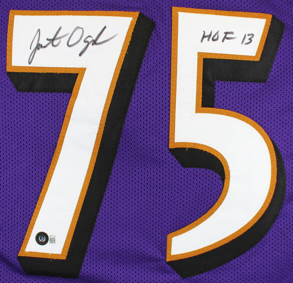 Jonathan Ogden "HOF 13" Authentic Signed Purple Pro Style Jersey BAS Witnessed