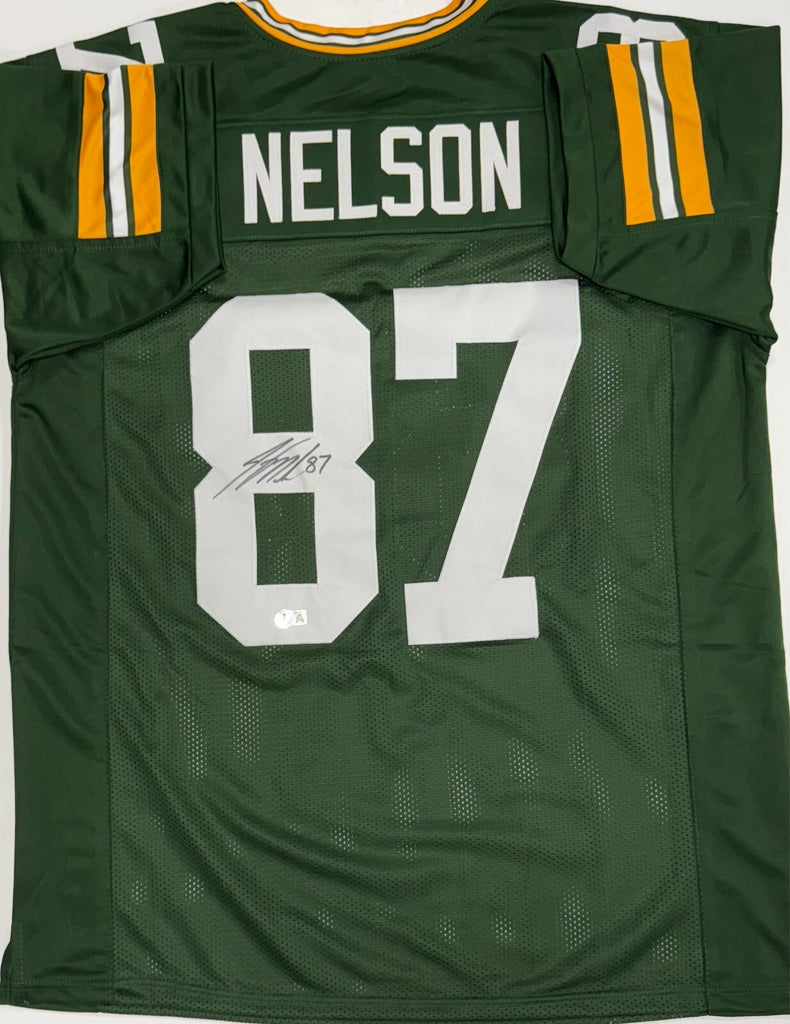 Custom Replica Jersey hand signed by Green Bay Packers Super Bowl XLV Champ JORDY NELSON. The signature is in Black Paint pen. This jersey was signed at a private signing with us and would make a great addition to any Packers collection! The jersey size is XL and all letters and numbers are sewn in. This autograph is guaranteed to be 100% authentic and will include a COA from Beckett Authentication.