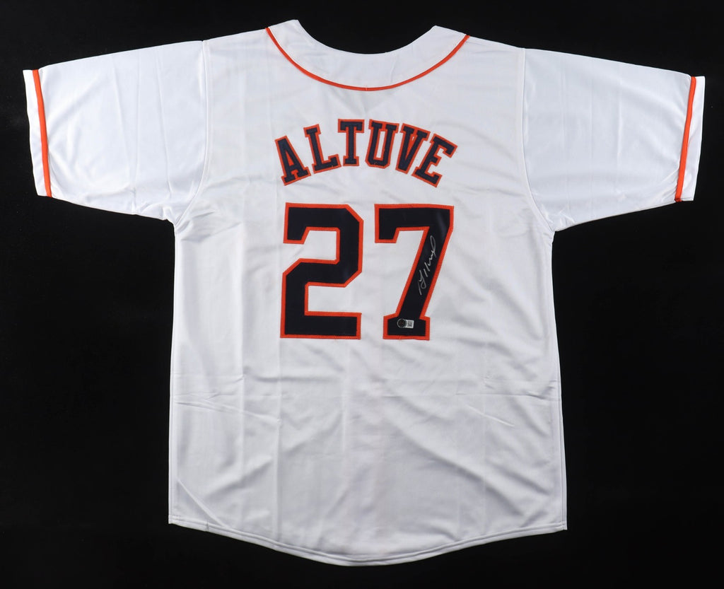 This autographed custom on-field style adult XL jersey has been personally hand-signed by Jose Altuve of the Houston Astros. The autograph includes an official Beckett Authentication Services serially-numbered scannable hologram and QR Code card for authenticity purposes.Authentication: Beckett Scannable Hologram with QR Code cardCustom on-ice style jerseys are a more affordable option for autograph seekers. These jerseys do not have any brand name or tags and are made in the Philippines. They feature stitched on names and numbers and are made to look very similar to the on-field jerseys that the players wear. These custom jerseys are very commonly used in the memorabilia industry.