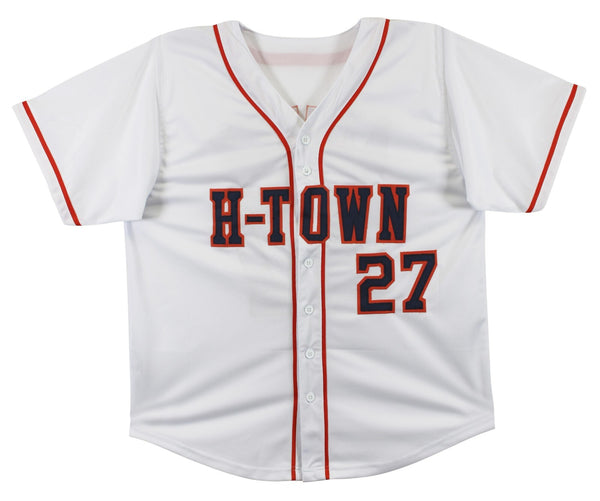 This autographed custom on-field style adult XL jersey has been personally hand-signed by Jose Altuve of the Houston Astros. This autograph is certified by James Spence Authentication (JSA). It comes with the numbered hologram and matching Certificate of Authenticity.