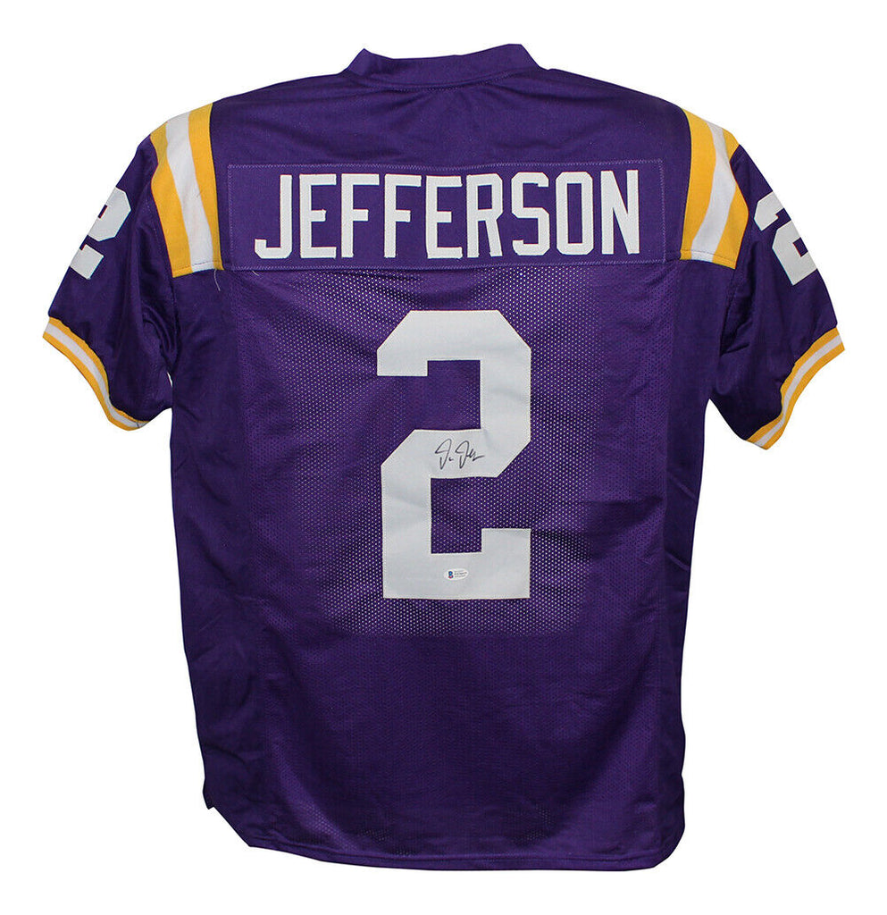 Justin Jefferson Autographed/Signed College Style Purple XL Jersey BAS 29873 The number in the listing title is just an inventory sku for our records and is not the authentication number. This is a custom college style purple XL jersey with sewn on name and numbers that was personally autographed by Justin Jefferson. Includes a certificate of authenticity from Beckett Authentication Services (BAS) and Denver Autographs.