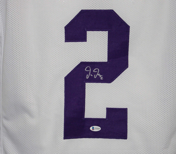 Justin Jefferson Autographed/Signed College Style White XL Jersey BAS 27709 This is a college style custom XL white jersey with sewn on name and numbers that was personally autographed by Justin Jefferson. This jersey includes a certificate of authenticity from Beckett Authentication Services (BAS) and Denver Autographs.
